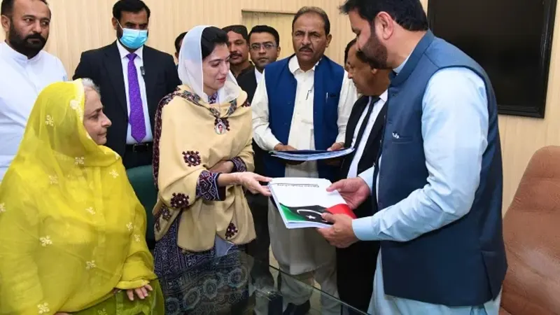 On her X account, Aseefa shared pictures of her filing nomination papers with the returning officer in Nawabshah.