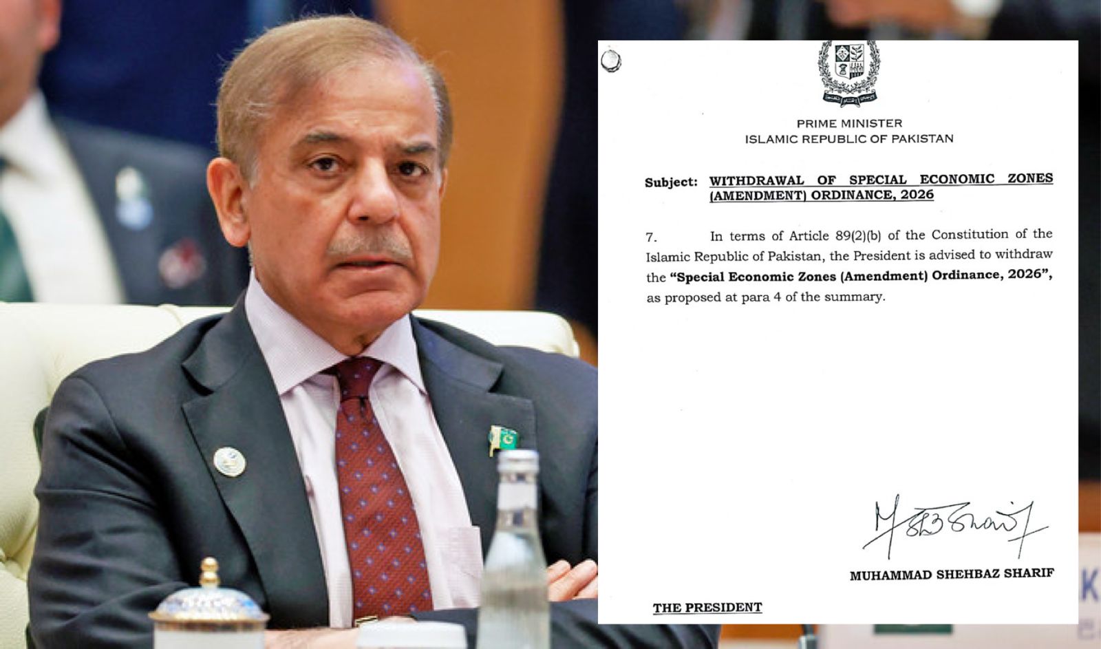 The Prime Minister of Pakistan has approved the withdrawal of the Special Economic Zones (Amendment) Ordinance 2026.