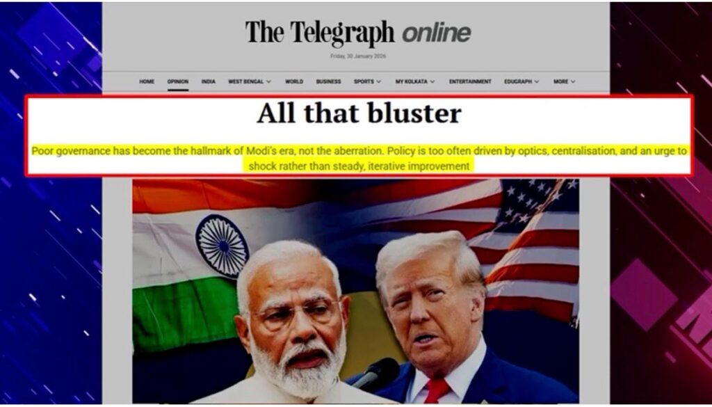 According to The Telegraph, weak strategic planning and an ineffective foreign policy have exposed the limitations of India’s claims of regional dominance. The report states that institutional equity sell-offs and the impact of US sanctions compelled Prime Minister Modi to concede to American pressure.