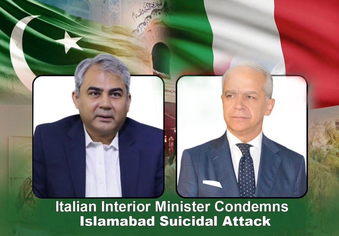 Islamabad : Italy’s Interior Minister Matteo Piantedosi and European Commissioner Magnus Brunner contacted Federal Interior Minister Mohsin Naqvi to strongly condemn the suicide bombing in Islamabad and to express heartfelt condolences over the loss of precious lives.