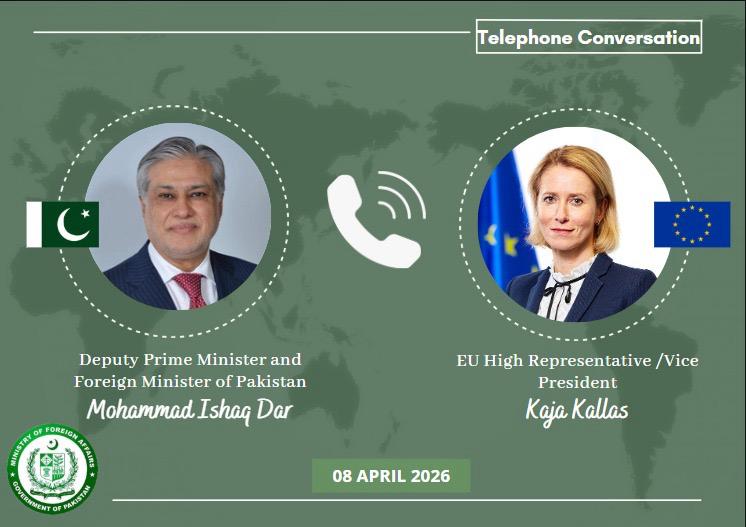 EU High Representative Kaja Kallas held a telephone call with DPM Dar to review the latest regional developments. Kallas thanked the Foreign Minister for Pakistan’s pivotal role in securing an initial ceasefire between the conflicting parties. The EU official stated that Islamabad’s actions have created much-needed space for further diplomacy. Kallas affirmed the European Union’s full support for Pakistan’s ongoing mediation efforts to ensure the truce remains intact.