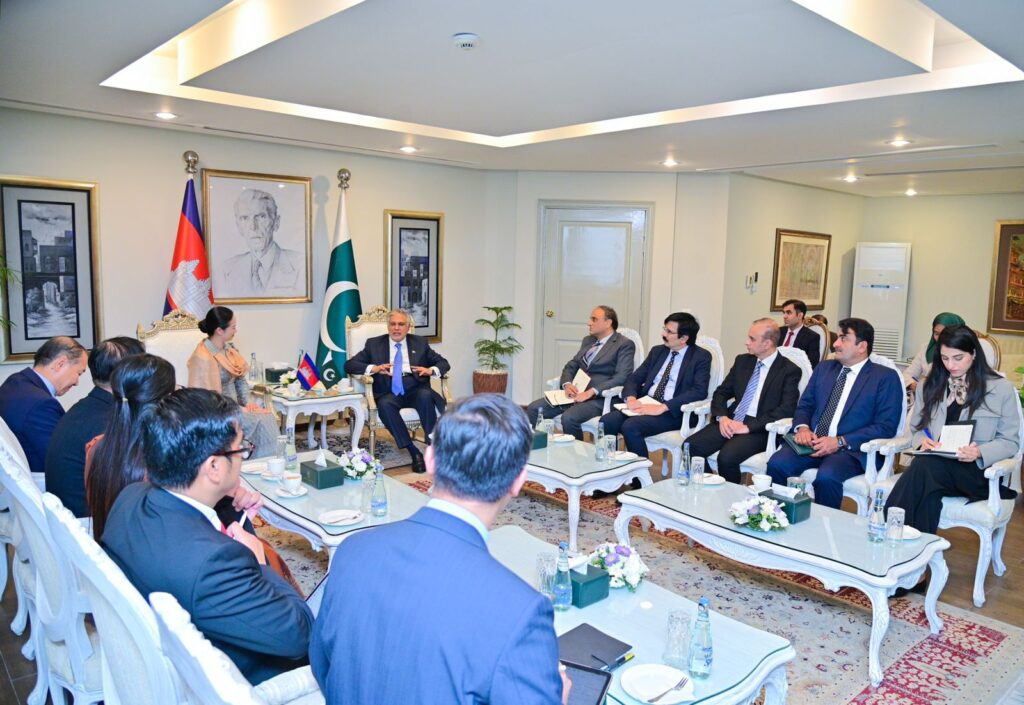 ISLAMABAD : Deputy Prime Minister and Foreign Minister Senator Mohammad Ishaq Dar on Tuesday received Cambodia’s Minister of Commerce, Cham Nimul, at the Ministry of Foreign Affairs.