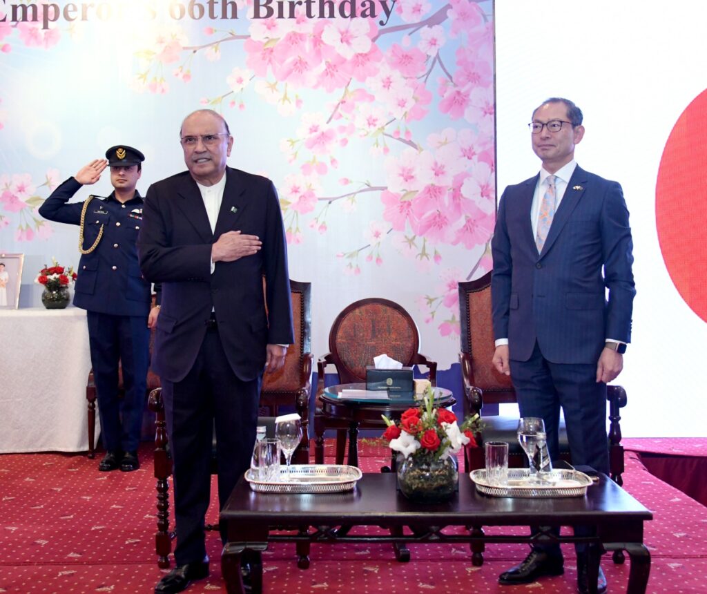 Speaking at a reception in Islamabad to mark the 66th birthday of His Majesty Emperor Naruhito of Japan, the president said that Pakistan and Japan shared a relationship built on decades of trust, mutual respect, and consistent cooperation. He underlined Japan’s enduring support for Pakistan and its significant contribution to the country’s development journey.