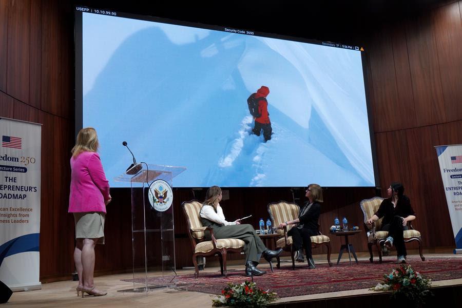 As part of the series, Donna Carpenter, co-founder and chair of the board of directors of Burton Snowboards, joined Samar Khan, a Pakistani professional athlete and alumna of the U.S. Department of State’s espnW Global Sports Mentoring Program, in a series of interactions with sports professionals, young leaders, and business stakeholders in the capital.