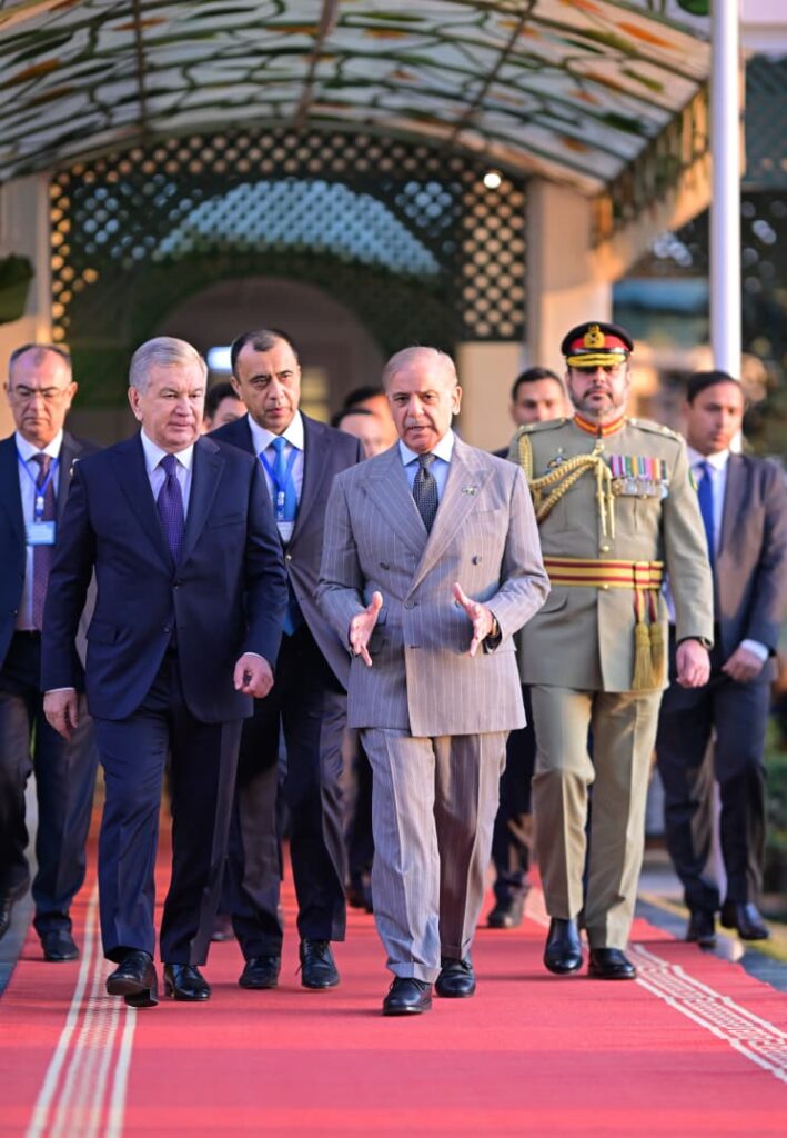 Prime Minister Shehbaz Sharif received President Mirziyoyev at the entrance of the Prime Minister’s House, where a formal reception ceremony was held in his honour.